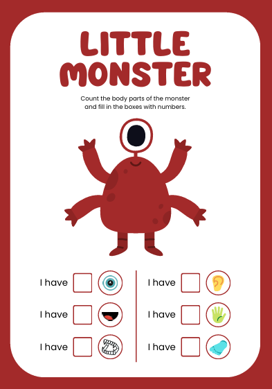 Little Monsters Body Parts Vocabulary Book in Colorful Cute Style